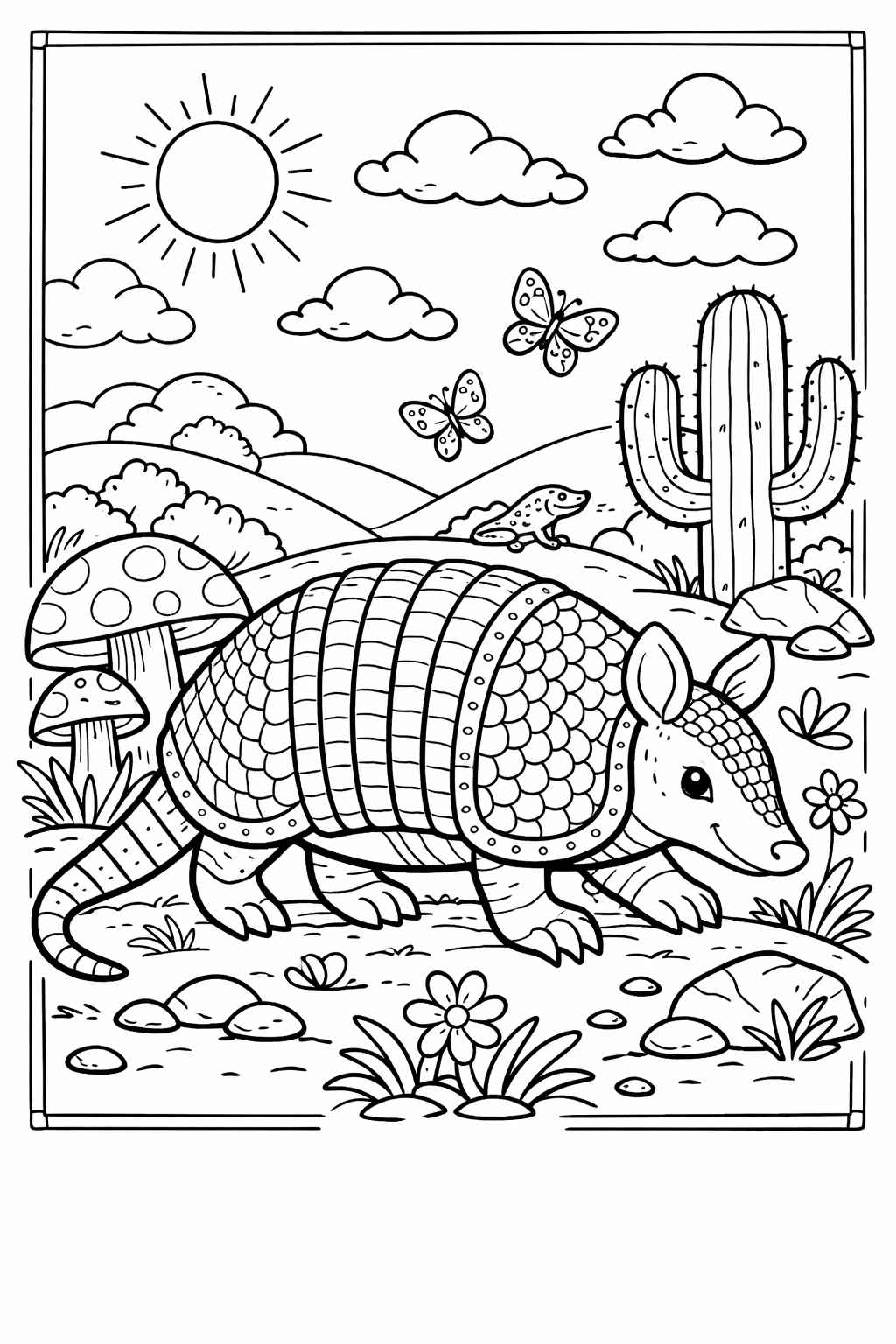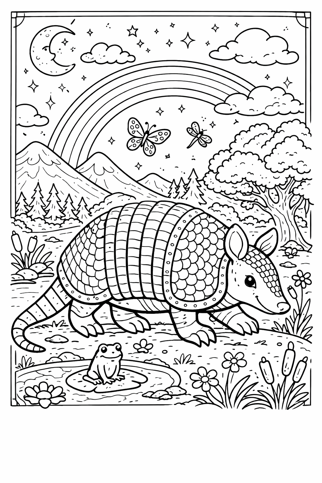 Armadillos with their characteristic armor shells, inquisitive countenances, and sportive attitudes are interesting models in coloring. Not only can these coloring pages offer many hours of amusement, but they are also a source of information about the natural world and the impressive qualities of armadillos.