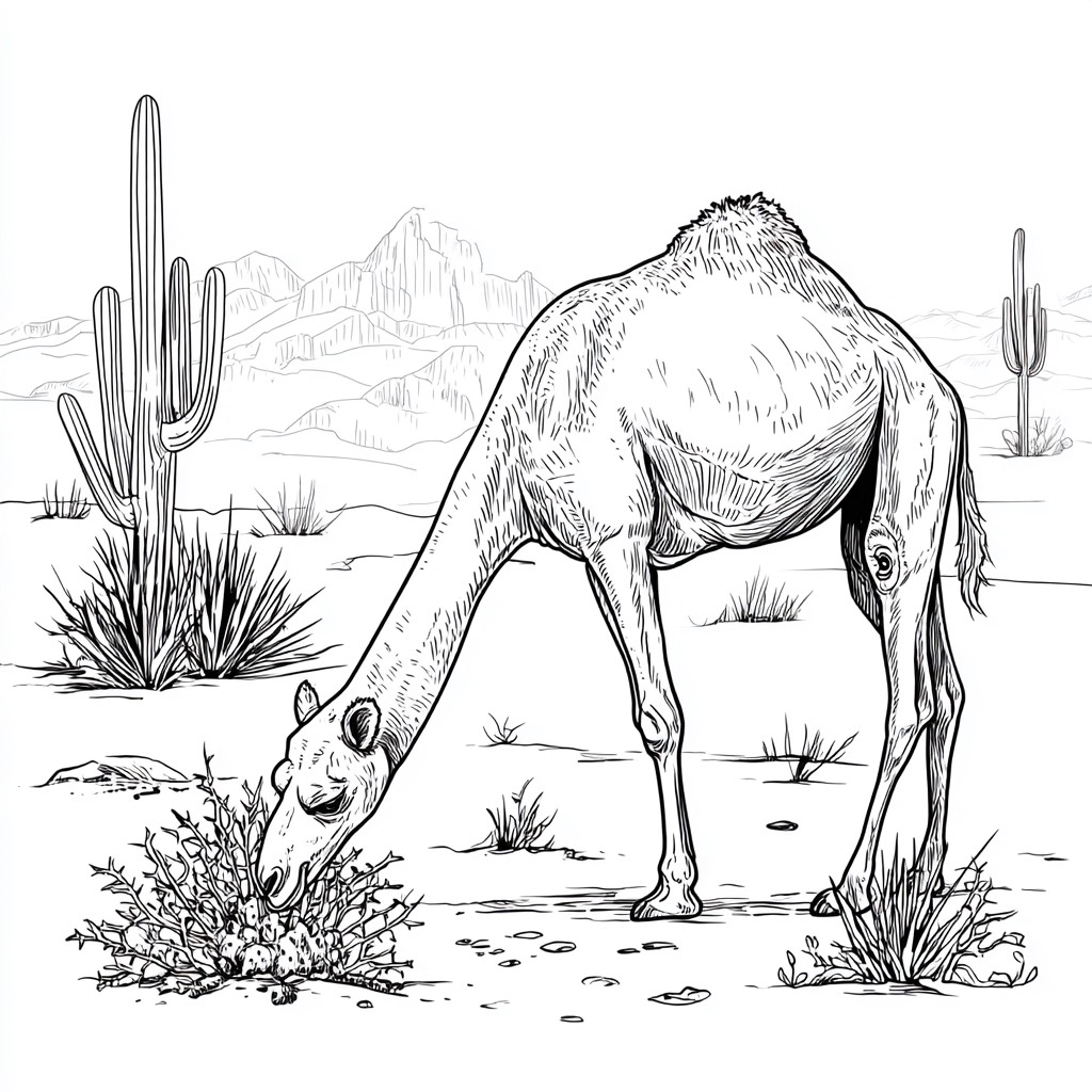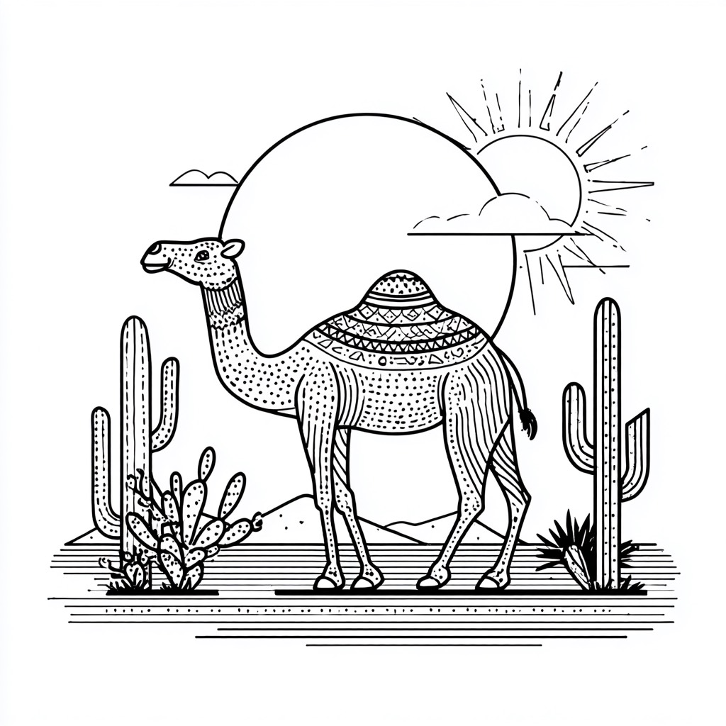 Researchers have scientifically tested and proven coloring as an effective method of relaxation and stress relief for both children and adults. Paying attention to soft lines and figures in a camel coloring page may induce some relaxation and mindfulness.