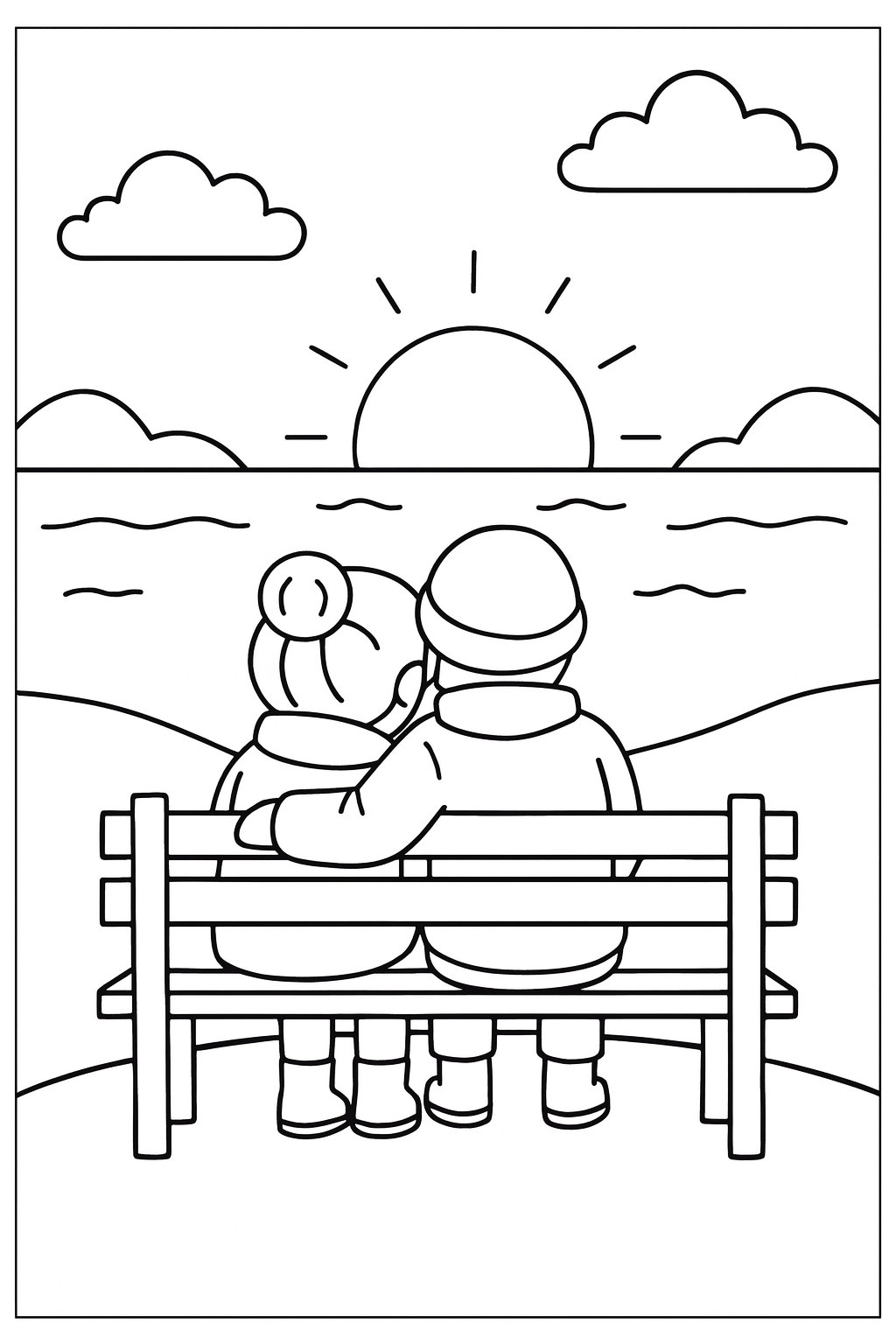 Free coloring page of a Couple watching the Sunset