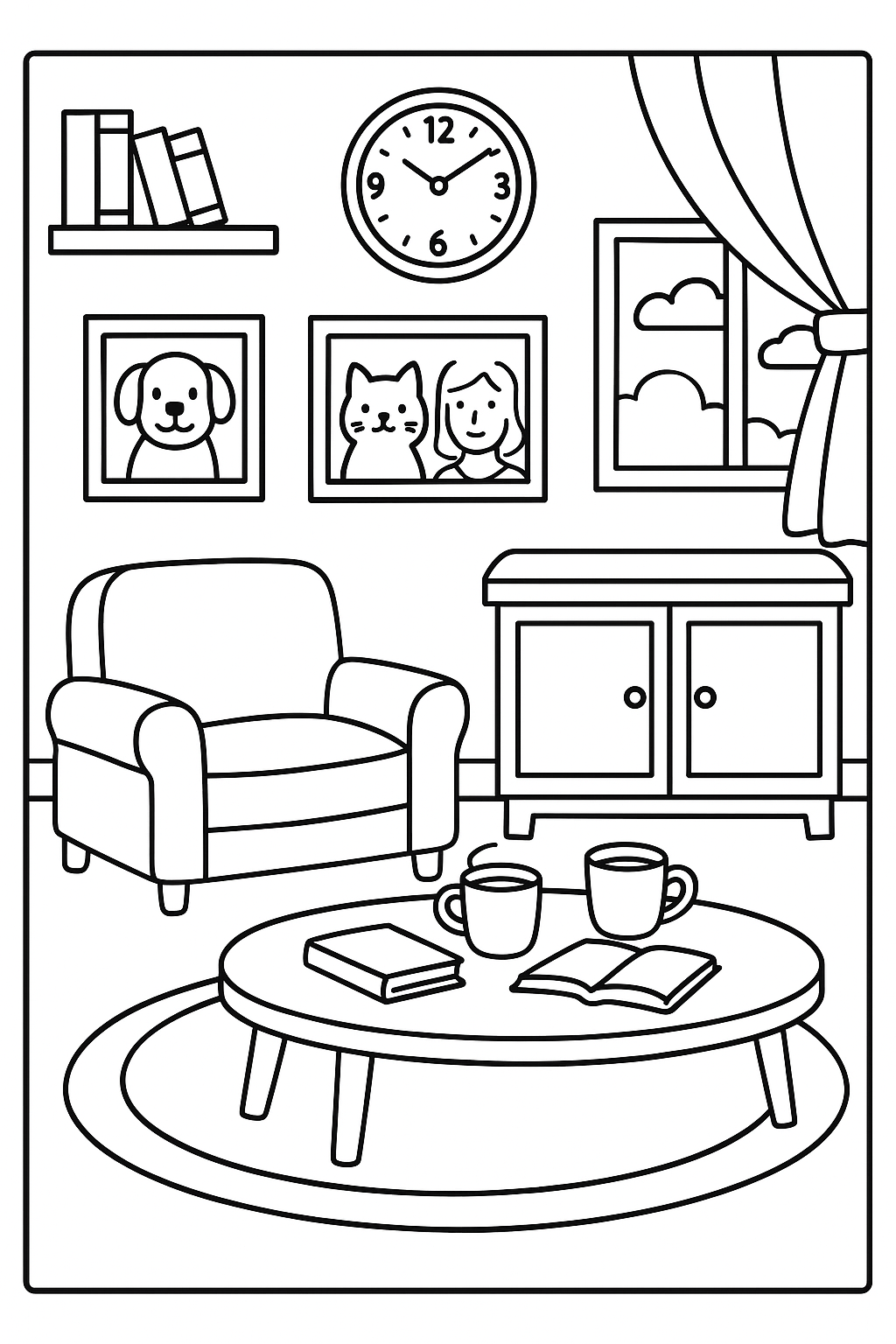 Free coloring page of a Cozy sitting room
