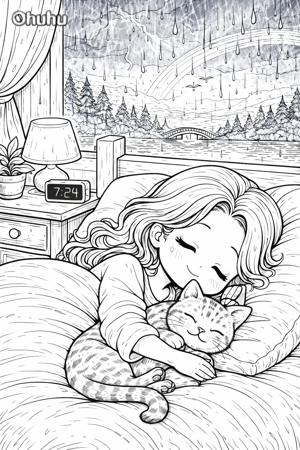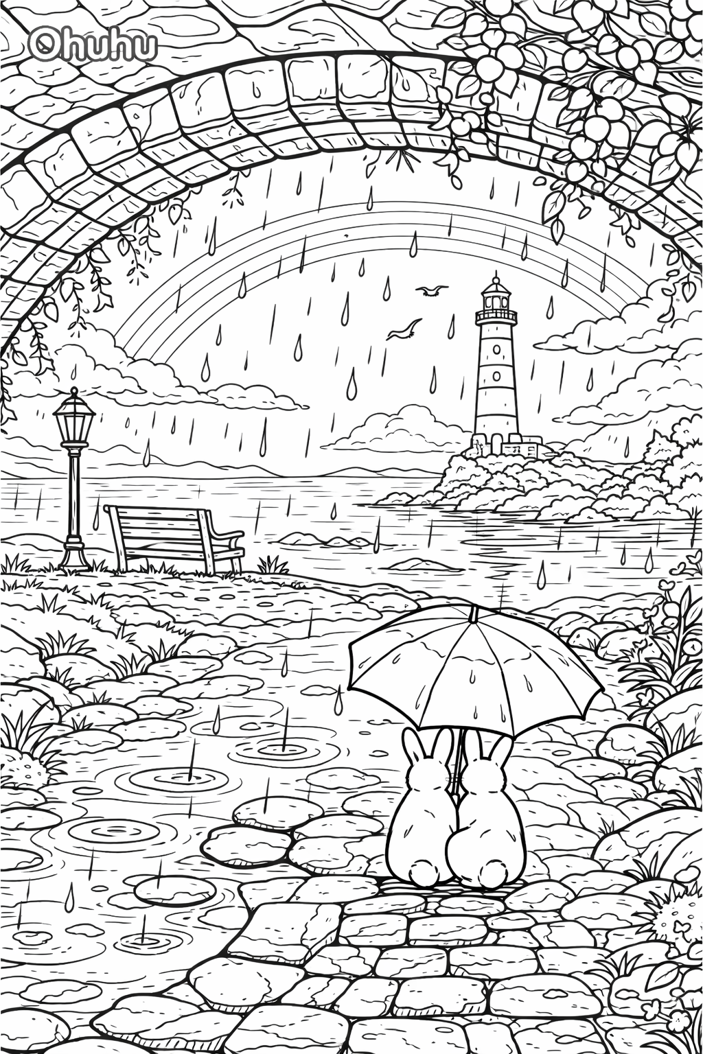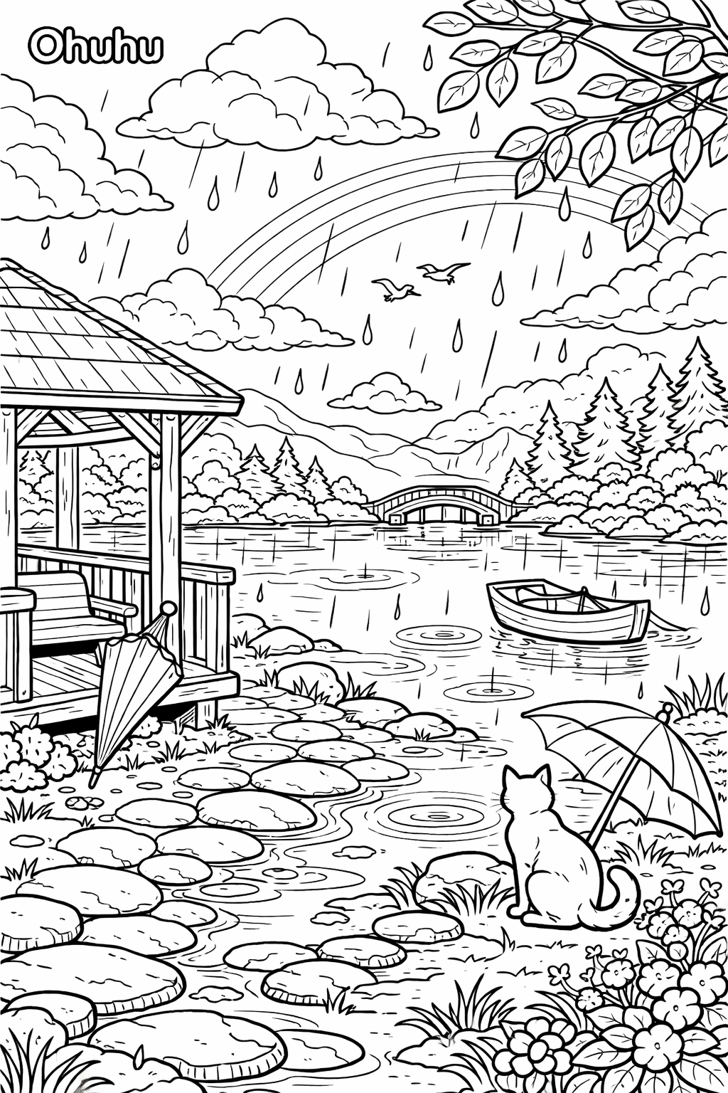The beauty of cuddly rain coloring pages is that this style of pages inspires individuals to feel serene and comfortable. The rain is commonly linked with slowness, reflections, and seeking warmth in a place. And these coloring pages actually reflect that. It could be a drawing of a window covered in drops of rain or a cat lying near a fireplace. All these pictures challenge the colorist to plunge into a calmed-down world. The process of coloring enables one to redesign these scenes with individual touch. Selecting colors that add to the impression of warmth or freshness of a rain-dipped landscape.