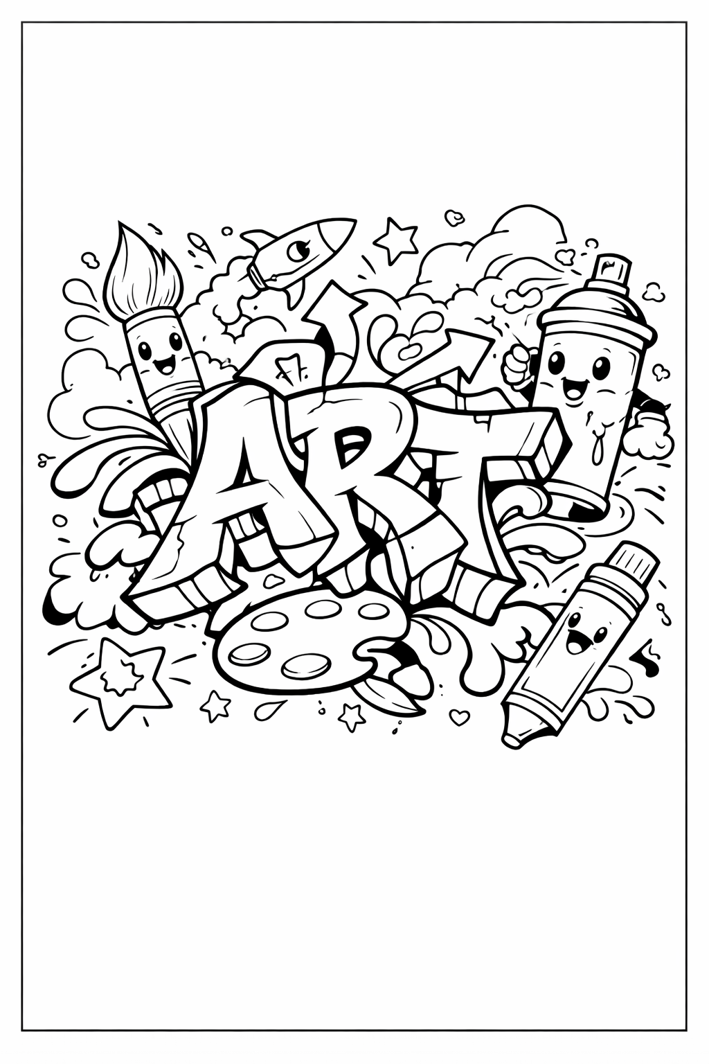 In addition, coloring graffiti pages offers a calming and therapeutic exercise. The monotonic movement of coloring will relieve stress and increase concentration. Bright and dynamic patterns will lift your spirits and inspire. It serves as a good way of self-expression among children and adults, as it positively redirects emotions. As a stress-relieving activity or a form of creative work. Graffiti coloring pages offer an exciting way to experience the rich culture of street art.
