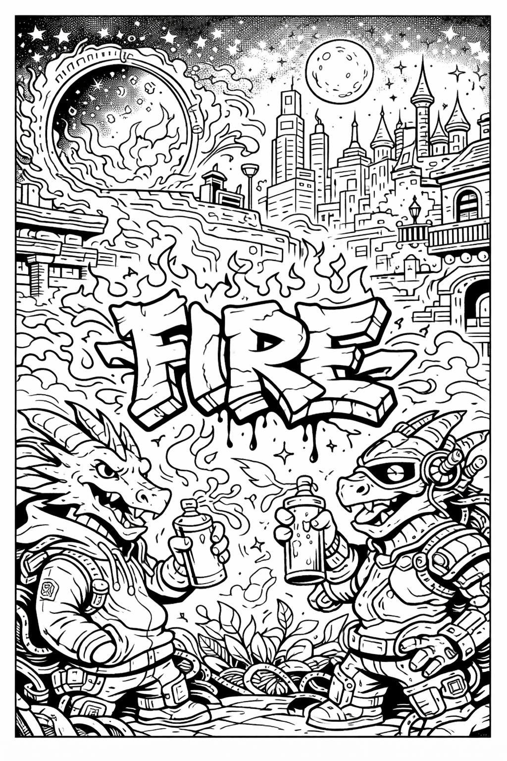 Graffiti coloring pages draw inspiration from this diverse art form and feature designs that include wildstyle lettering—complex, interlocking letters that often appear abstract—as well as stencil art and illustrated characters. On these pages, a user can play with the boldness and creativity of real graffiti. Remarkably, graffiti page coloring may also be a method to admire the task and to learn about the different styles of graffiti. Without having to carry a spray can and a wall to write on, which makes the art style becomes more manageable and less daunting.
