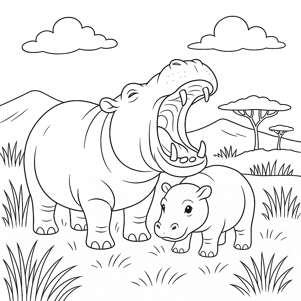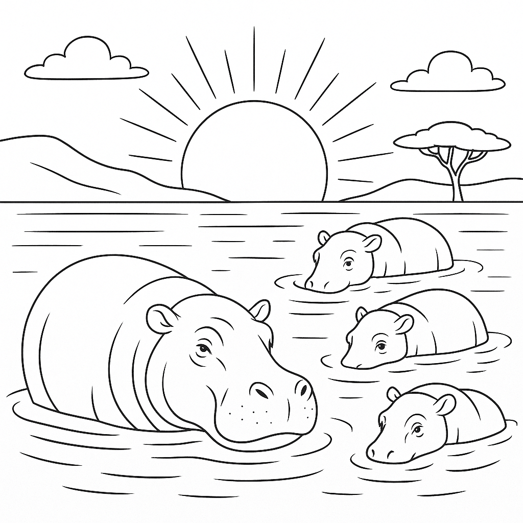 Connection with Nature: Coloring wildlife, such as hippos, creates understanding and sympathy towards the life and space of animals. This emotional connection often leads to greater interest in wildlife conservation and environmental stewardship.