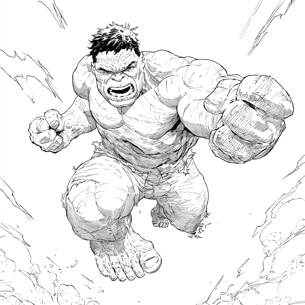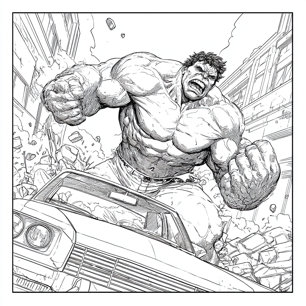 The Hulk is not merely a huge green superhero. He is a symbol of triumphing through adversity and living up to all aspects of ourselves. Coloring Hulk on a coloring page is a great creative activity to enter his world, develop your creative spirit, and probably even discover the power of Hulk inside of you.