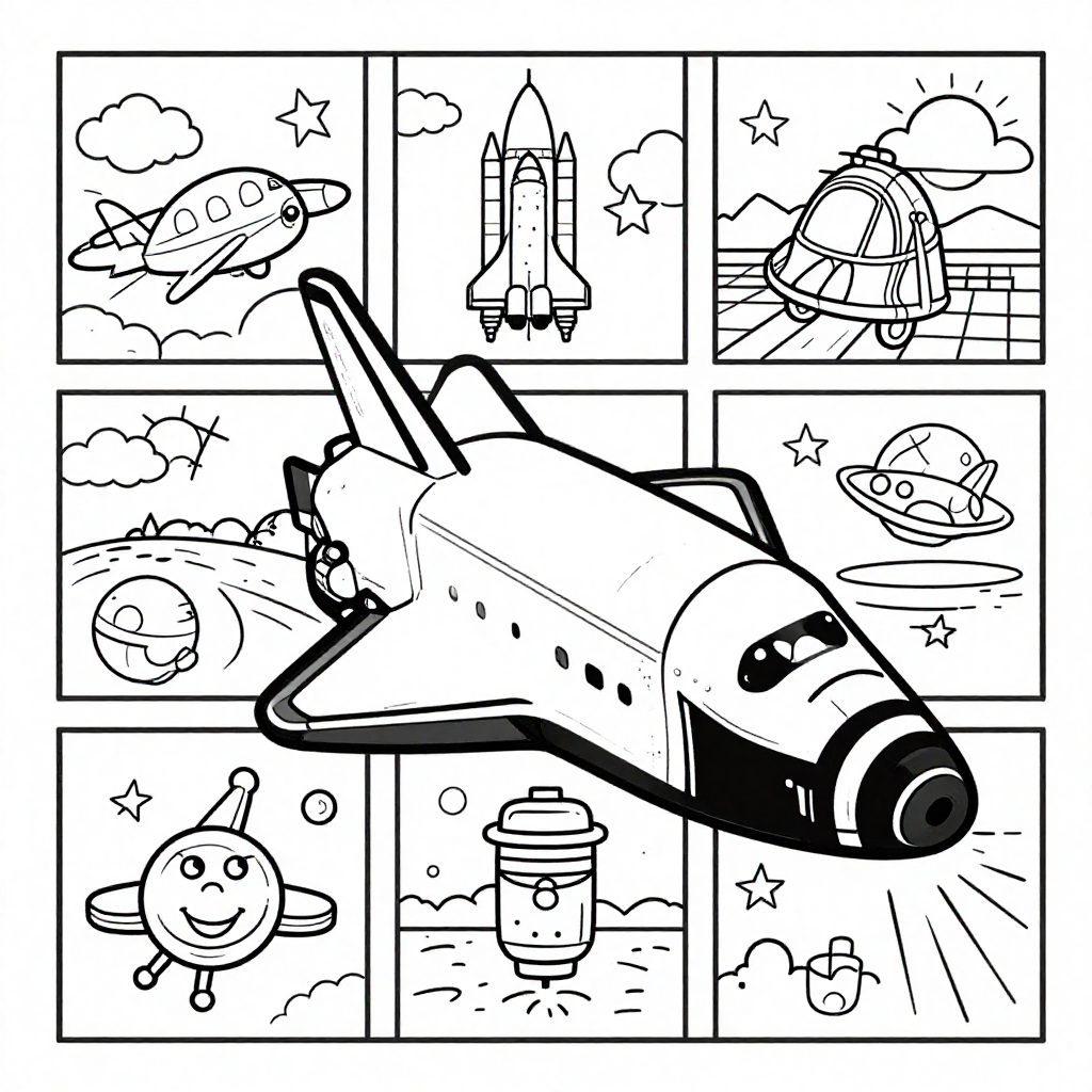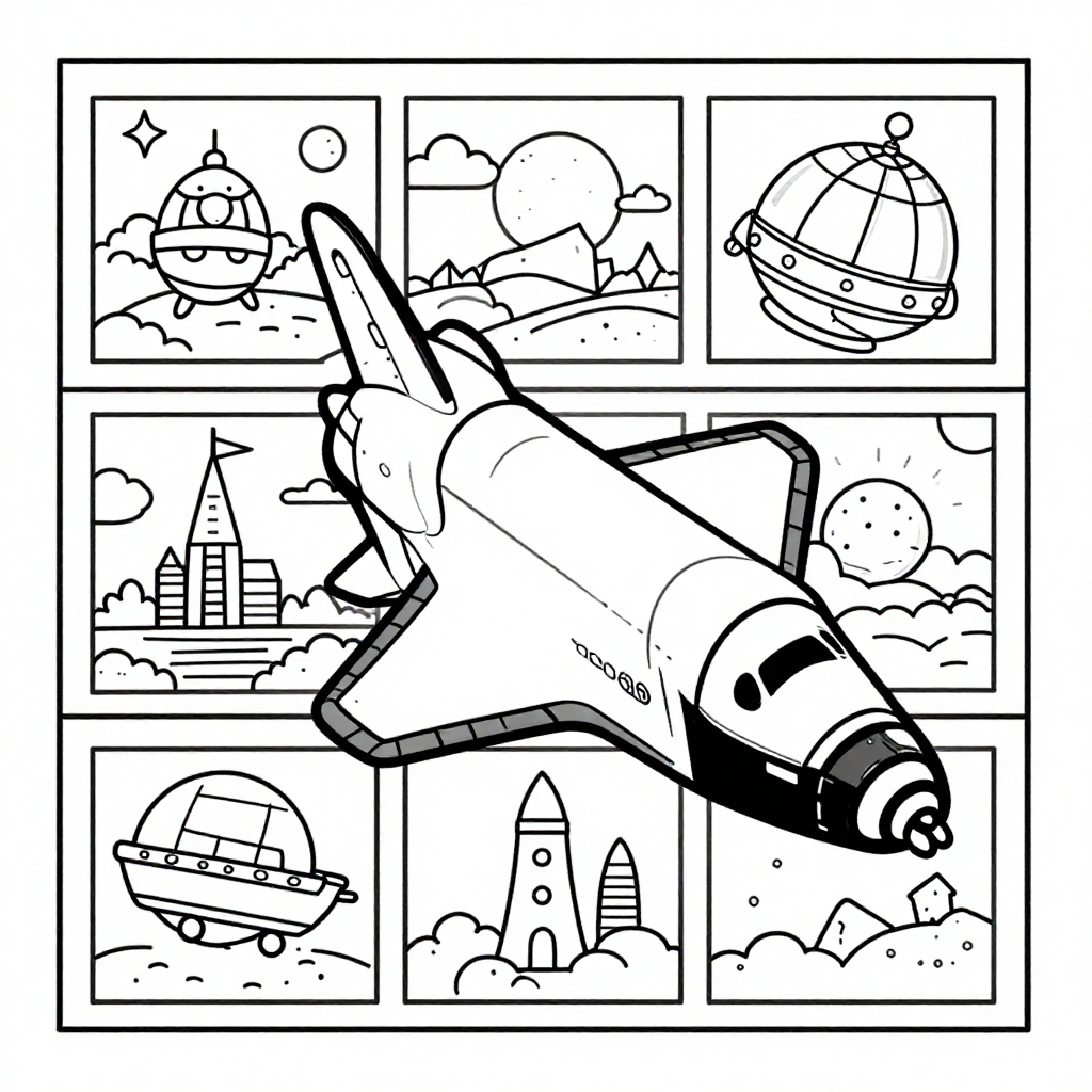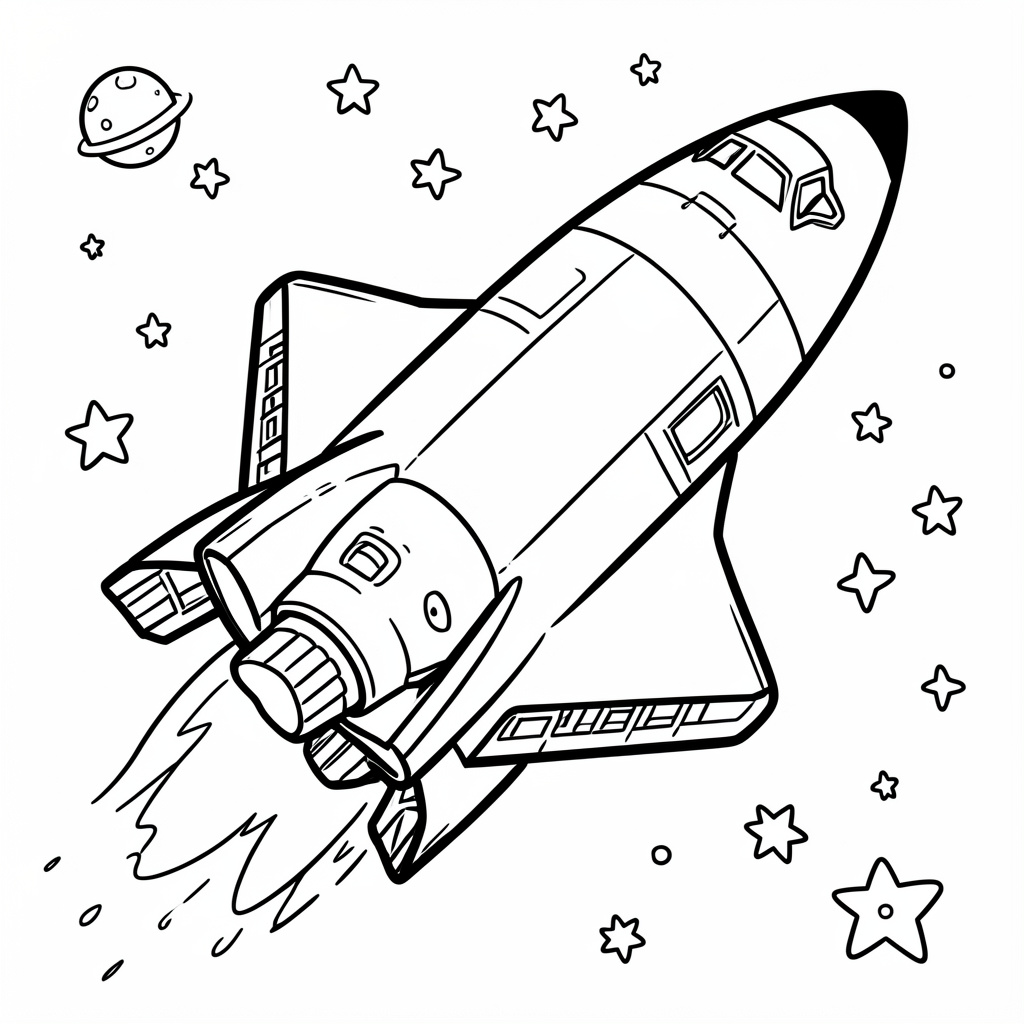 Coloring space shuttles on a coloring page can spark interest and imagination about space exploration. Painting a space shuttle will put you in contact with a representation of human ingenuity and adventure. It is not only about the ability to fill the colors in, but to relate to the narrative of adventure, collaboration, and scientific revelation. The coloring enables one to admire the detailed work of the shuttle. Which includes its heat-resistant tiles and its strong boosters that propel it to orbit.