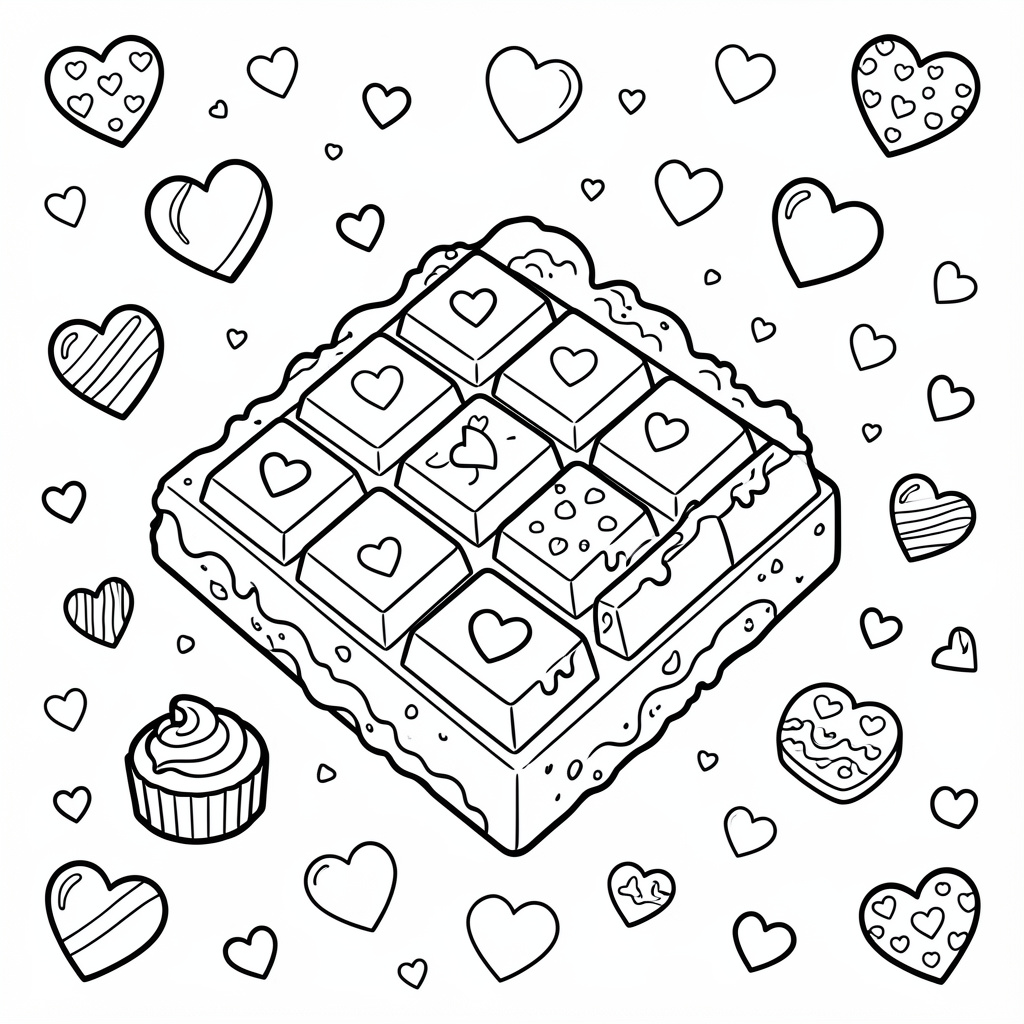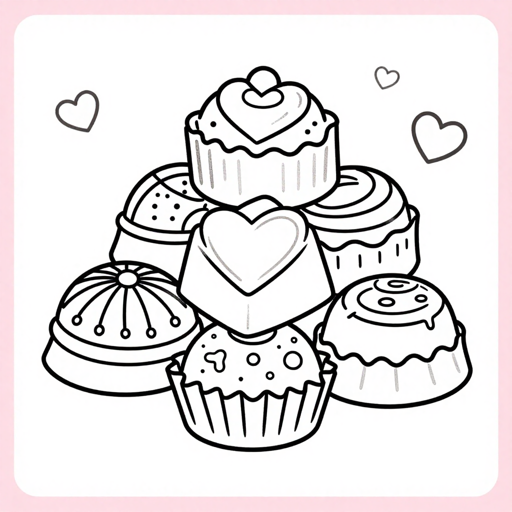 Other than fun, it can also be a treatment process to color these pages. Repeating the act of coloring also reduces stress and is more likely to make you remain in the present. And give full attention to what you are doing, forgetting your day-to-day concerns at the moment. The use of imagery of chocolates and hearts brings about a sense of warmth, love, and comfort, which makes the image soothing.