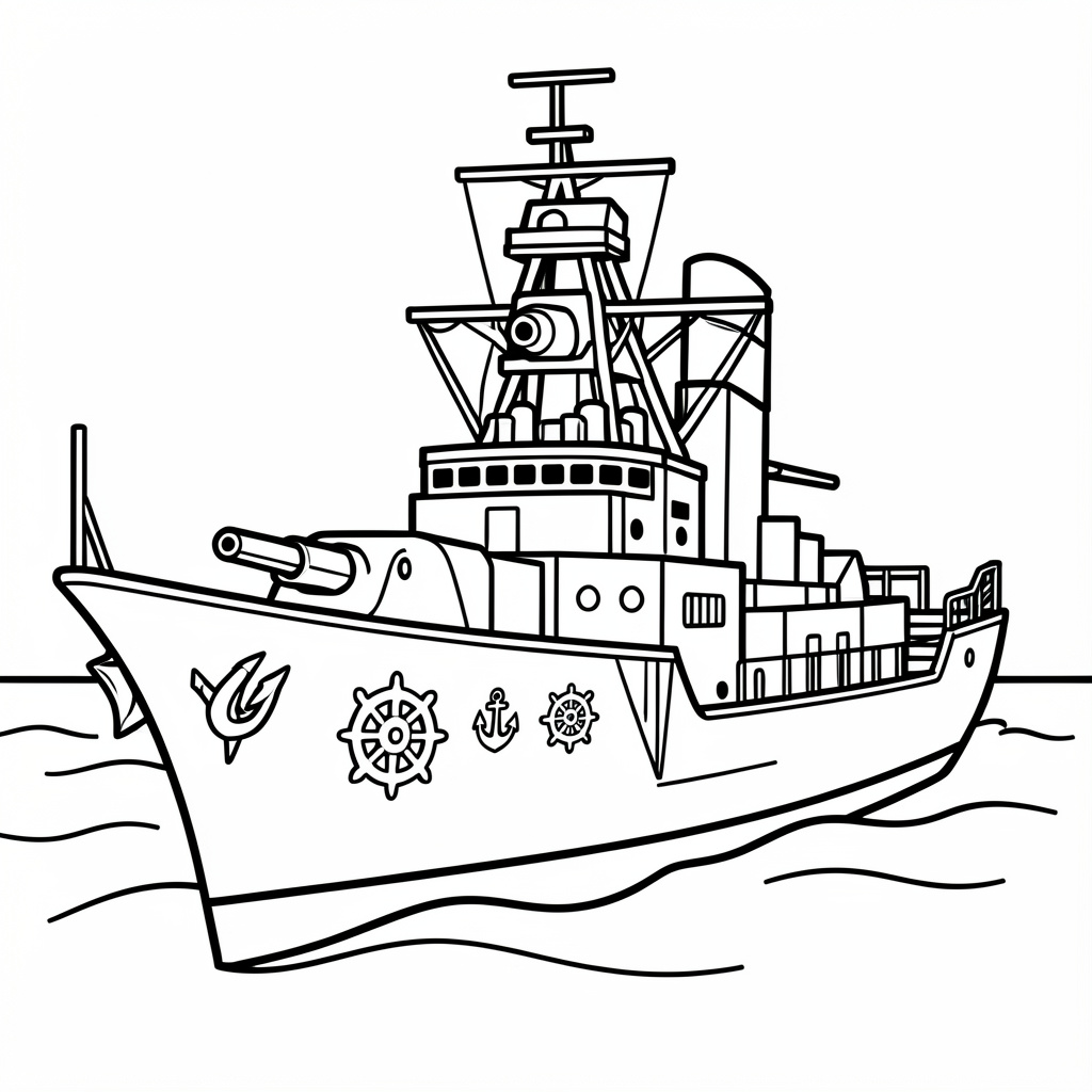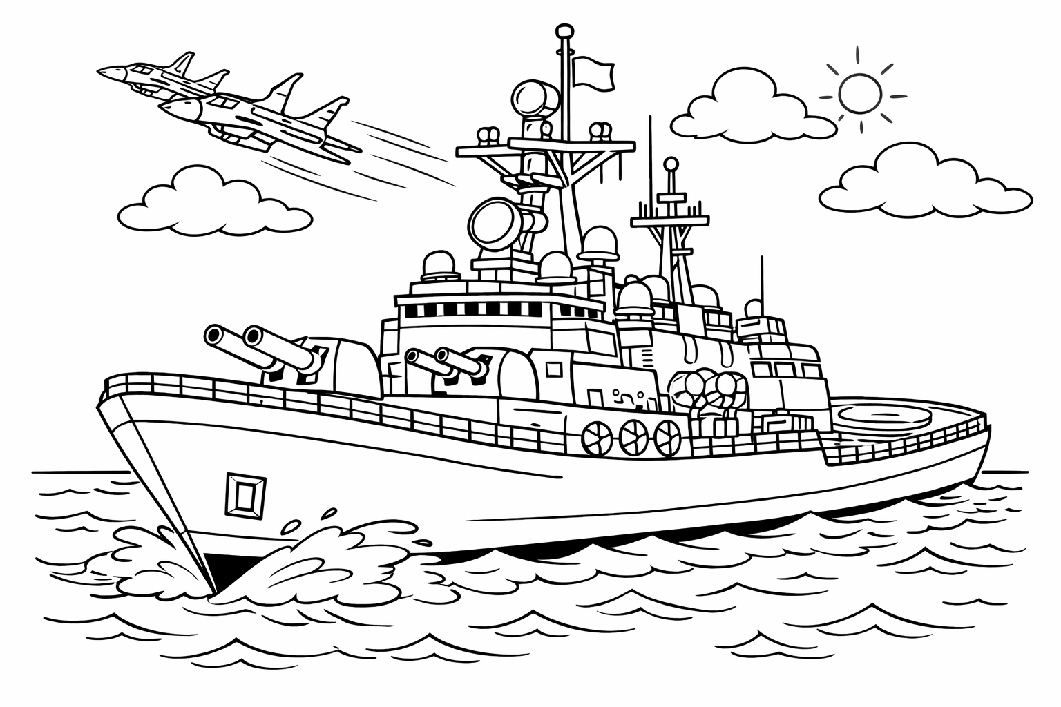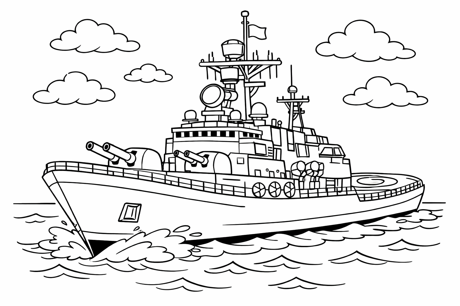 One can get an incredible access point to the history of the naval ships and engineering marvels, as well as artistic creativity, with warship coloring pages. These pages include line drawings of several kinds of warships, some of the old galleys, with their sails filled with wind, and some of the new aircraft carriers, full of new equipment. Painting these pages is not just a good hobby but also a learning process about the history of the sea war and naval design.